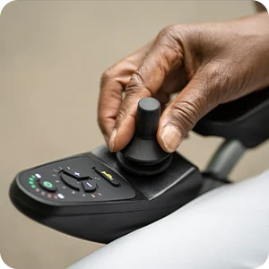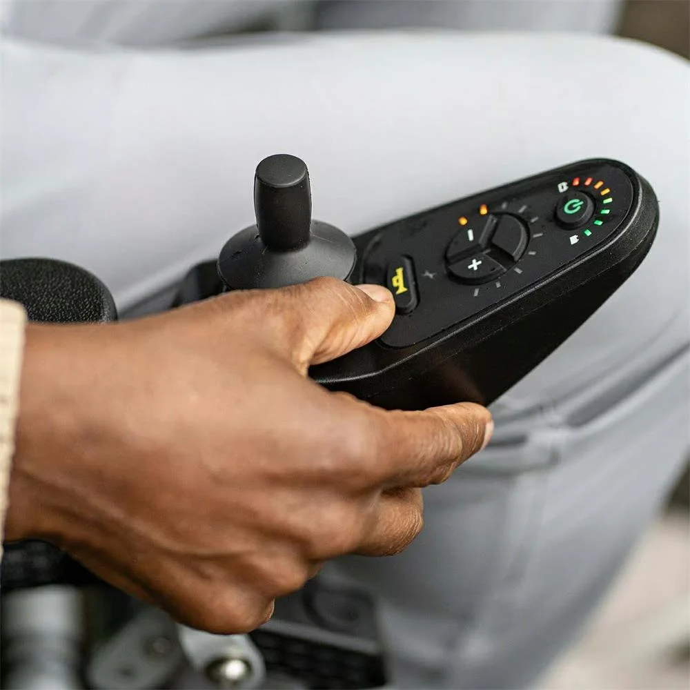 • Battery is charged while in place inside the chair via a port below the joystick control panel